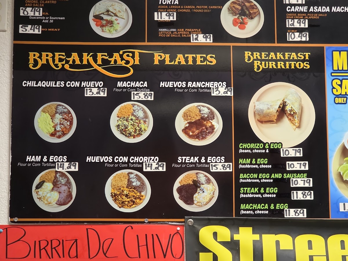 Choice of Meat. Beans, Cheese, Lettuce, Pico De Gallo, Sour Cream and Ranchera Sauce